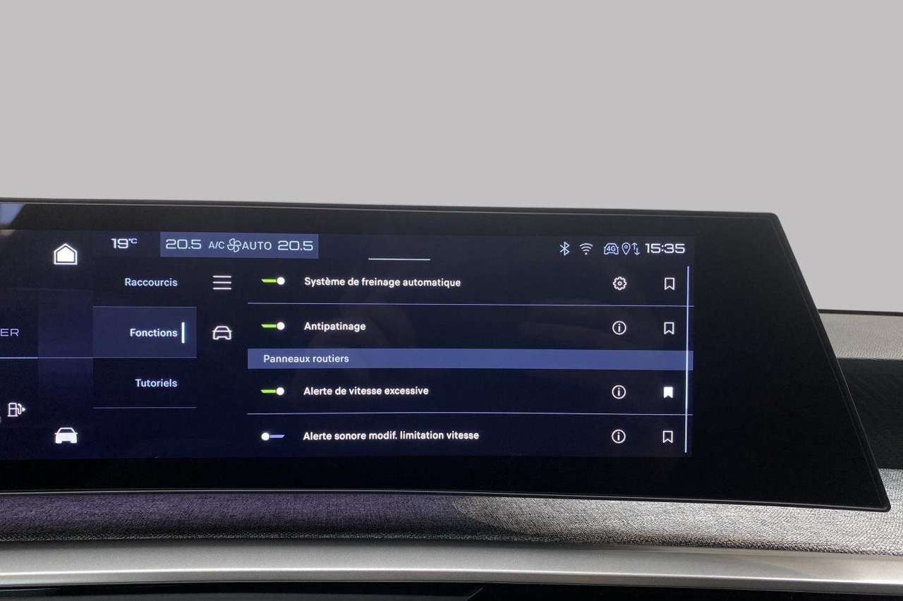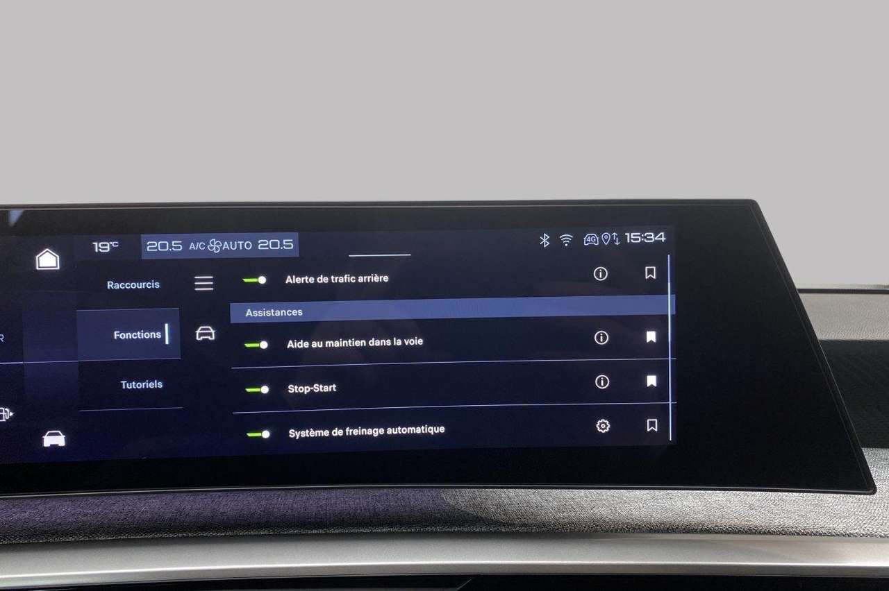 vitres latérales feuilletées et acoustiques, Rear Cross Traffic Alert, super condamnation, chargement smartphone, feux de croisement/feux de route automatique, pare-chocs av/ar Design 02, tableau de bord/garniture porte tissu Rimini avec écrans gris pierre, sièges av Dynamic, aide au parking latéral, moniteur